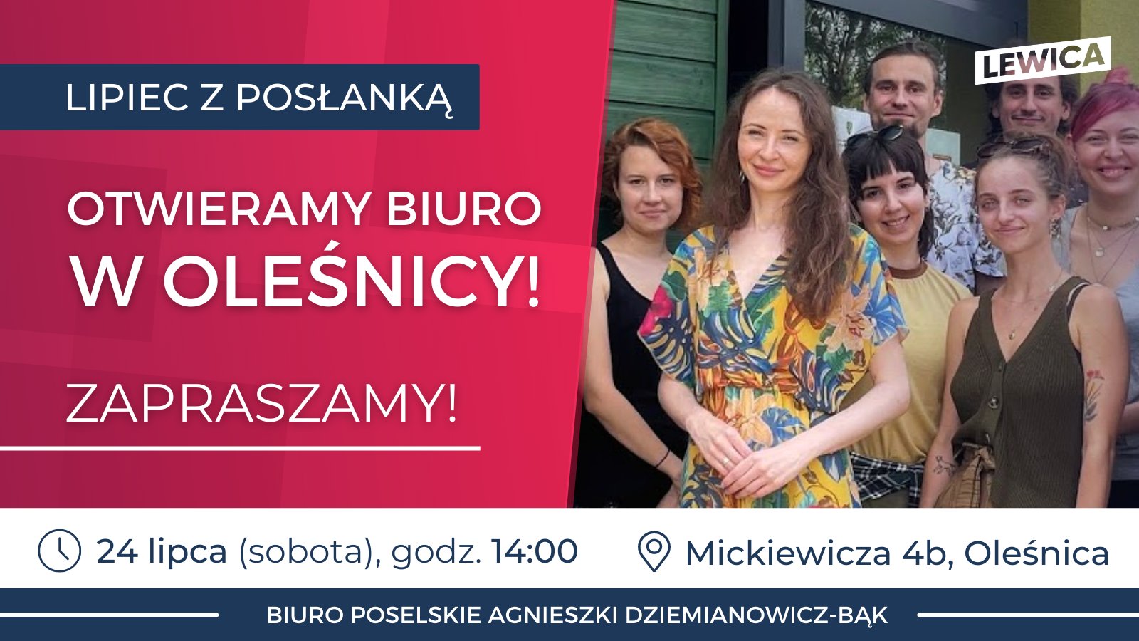Już w najbliższą sobotę, 24 lipca o godz. 14.00 oficjalne otwarcie mojego Biura Poselskiego w Oleśnicy!